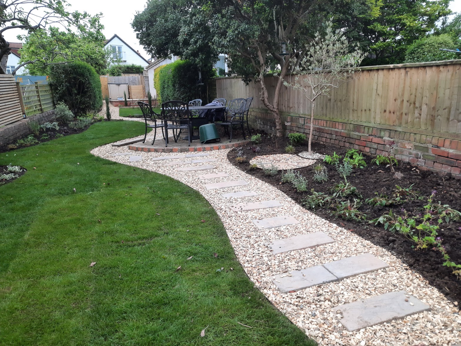 This long and thin, tapering garden called for a significant redesign, shrubs were cleared, old poorly conceived paths removed and the back garden garage base re-landscaped. Our clients wished for a wildlife friendly and a more immersive and aesthetically pleasing garden, to make more of their outdoor space.