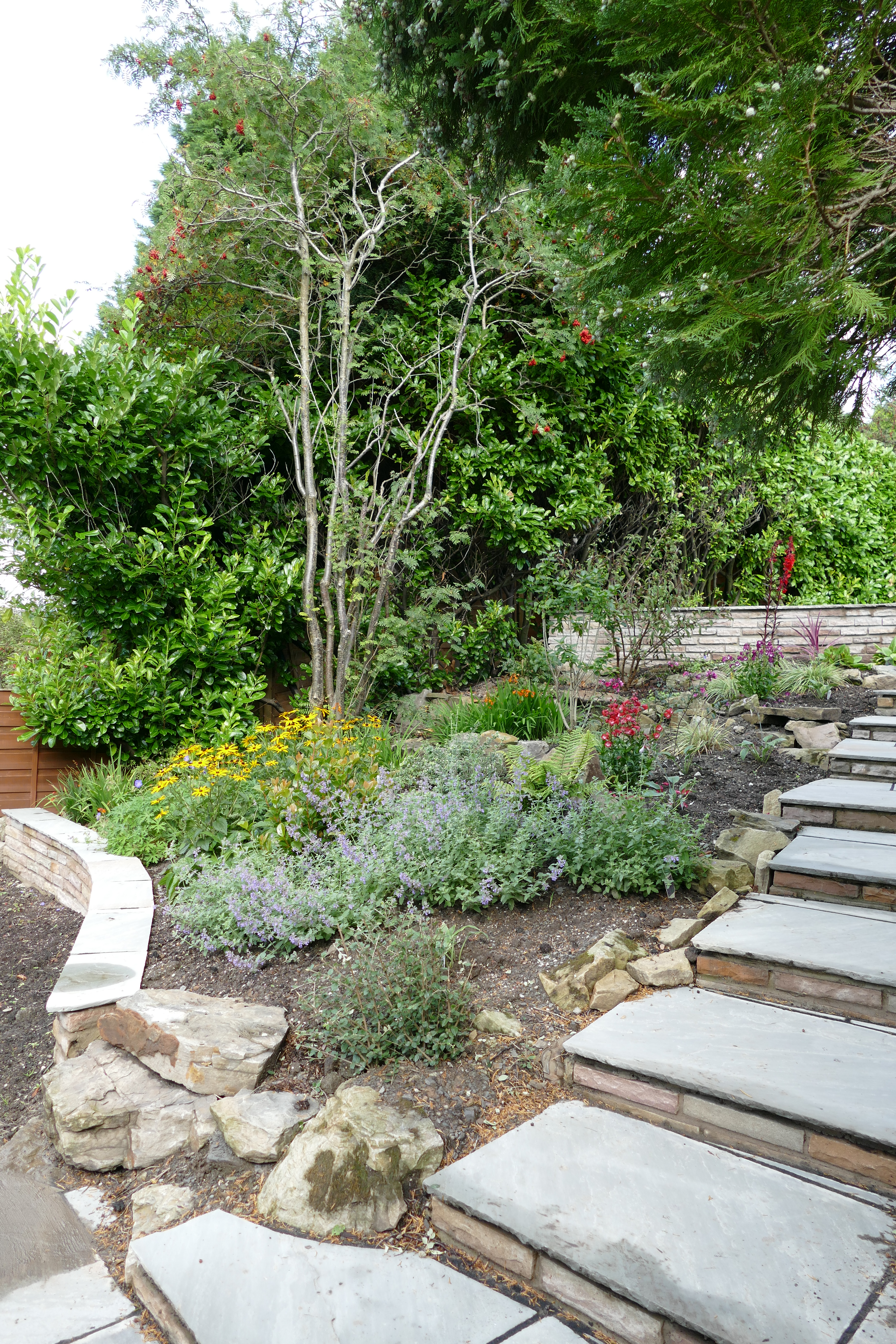 A planting plan brought colourful fresh plants to the garden. This project was challenging due to poor access, large quantities of materials needed to be moved by hand up the slope to the rear of the garden.