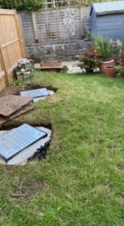Our unfortunate customer unknowingly bought a house in a new development with two large sewage manhole covers in her small back garden. The smell and site of this caused her significant upset, and we were employed to find a problem to this unpleasant smell, sound and sight!