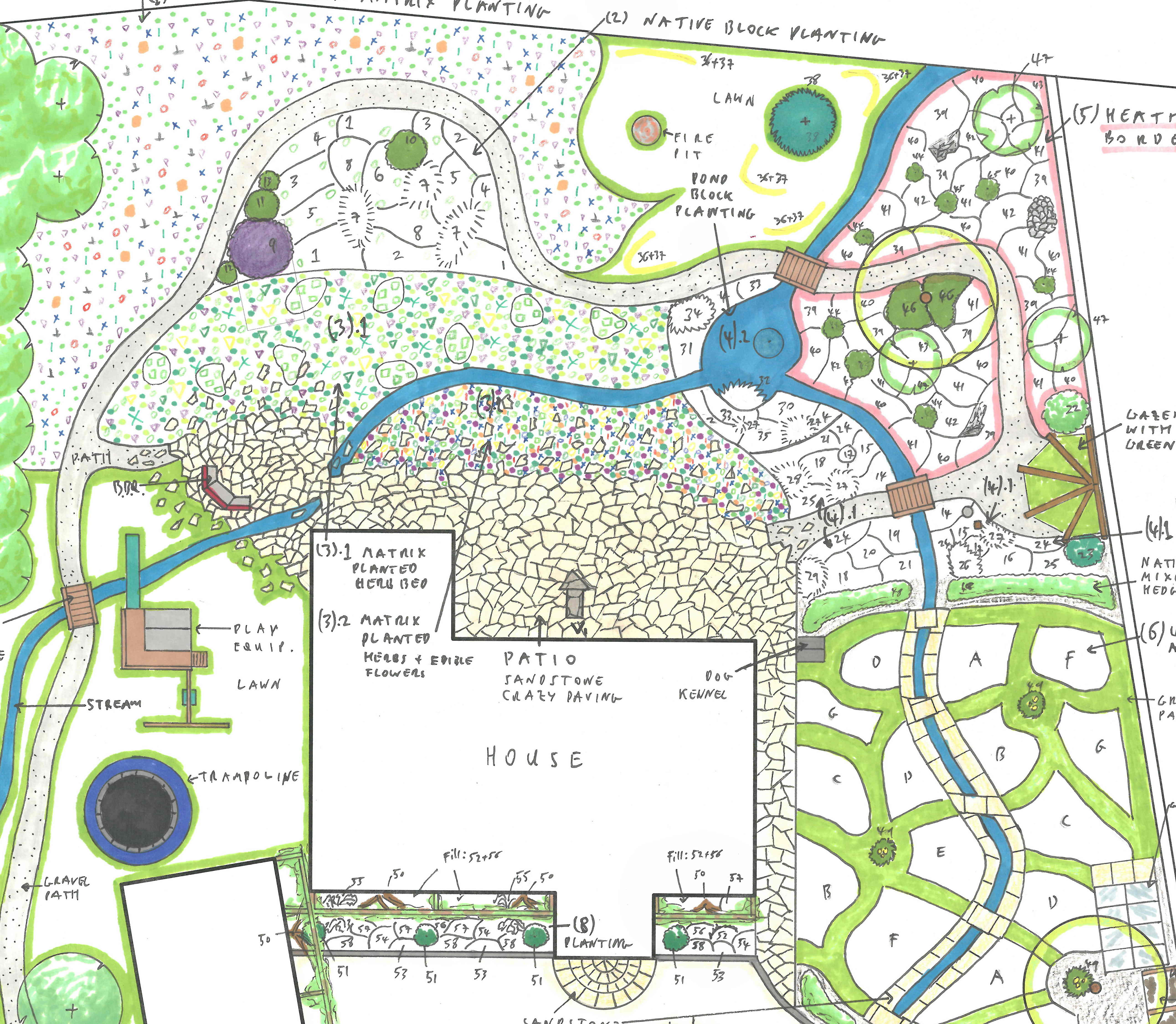 This is where the design is fleshed out into a detailed plan with enough information to build and plant the garden. This includes specific details on hard landscaping features and materials and specific planting plans: