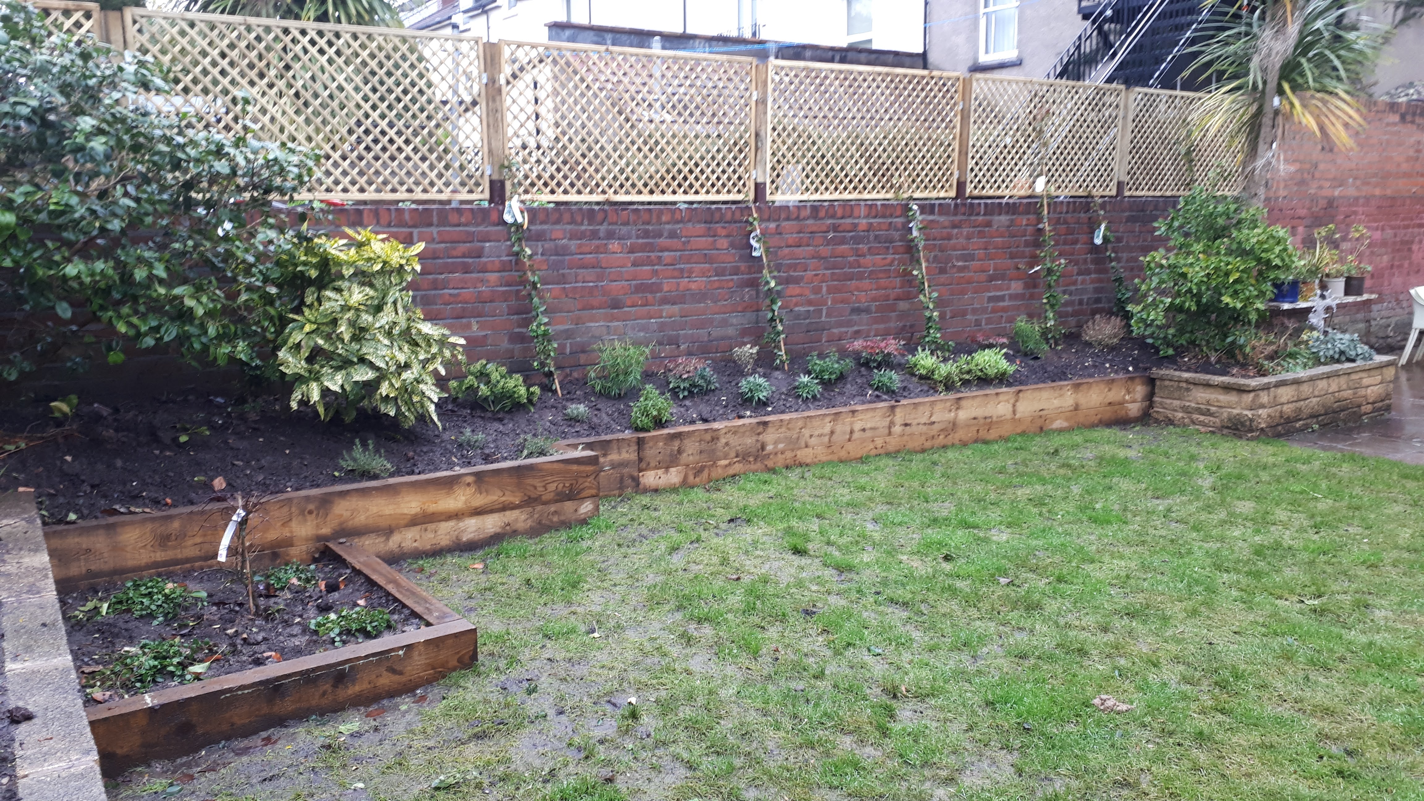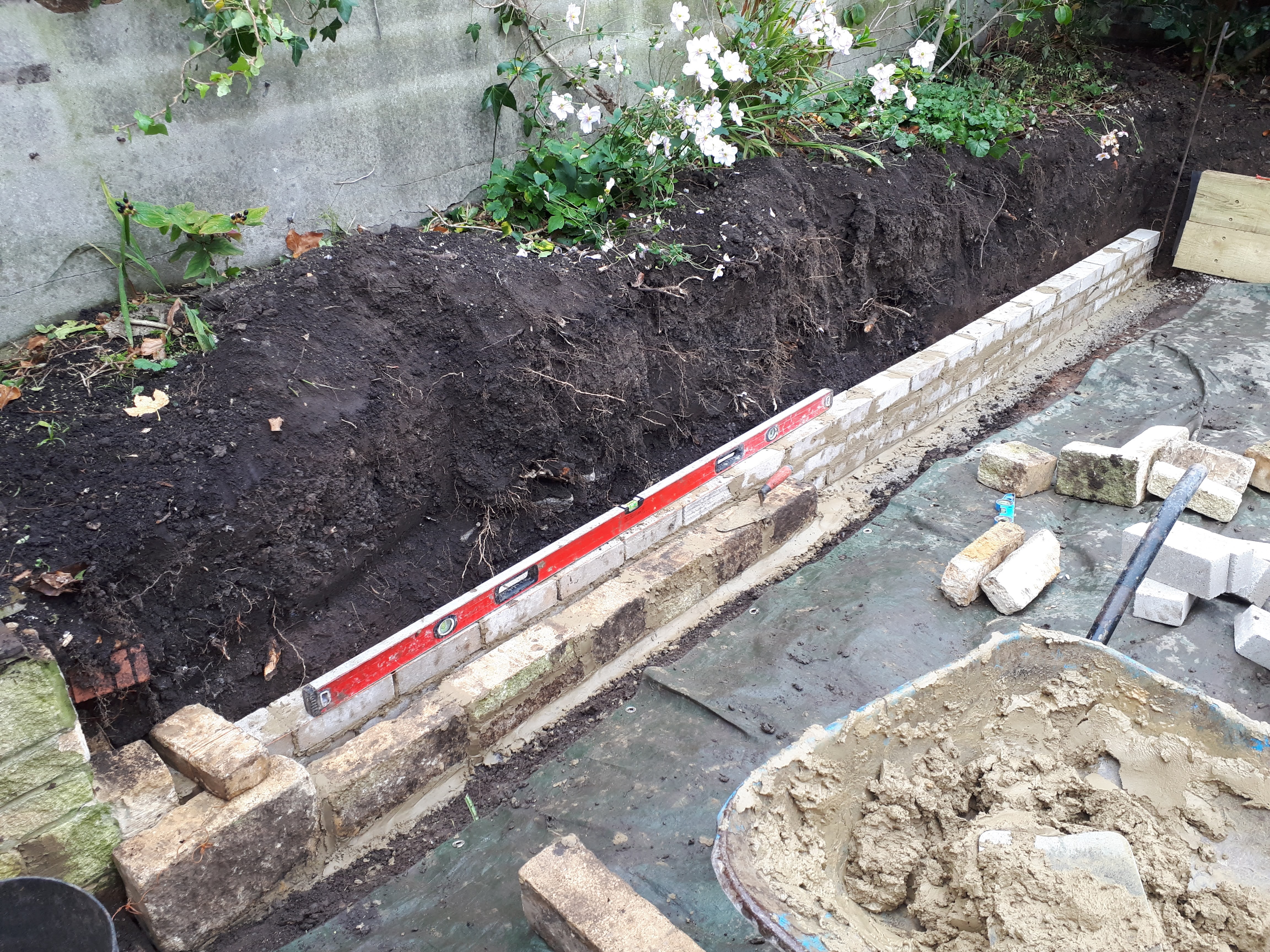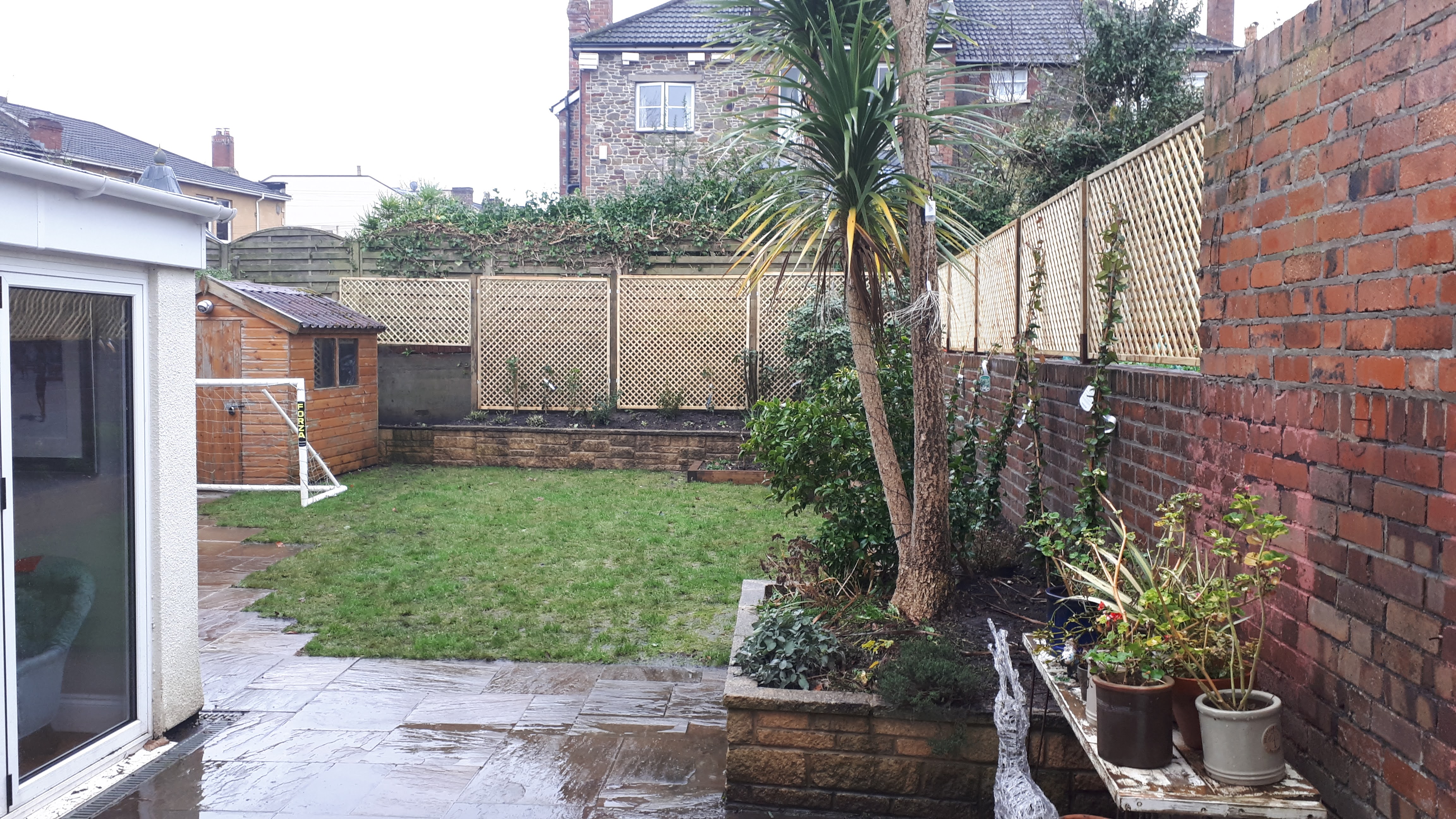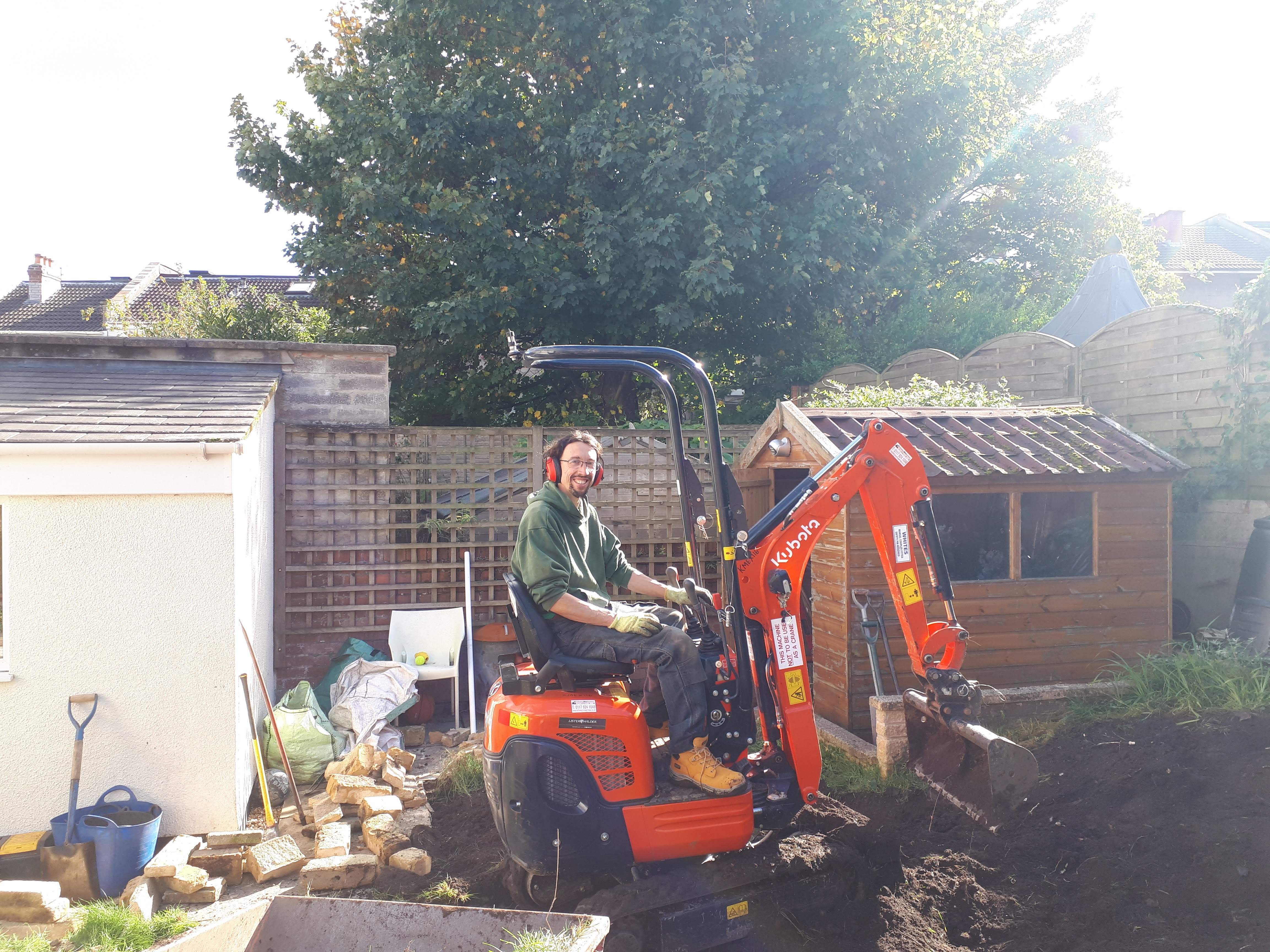 The former garden was heavily sloped, and the client wished to maximize play room for her son. A large volume of soil was removed using a digger and power barrow.